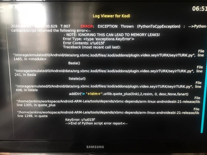 Çok ilginç bir hata alıyorsunuz, kodi ana listemizi listelemeye başladığında içindeki bir harf sıkıntı çıkarıyor. Ama başka kimsede bu hatayı almıyoruz. Cihazınızın kullanım dili nedir, android sürümü kaçtır? Ve yeni mi kullanmaya başladınız seyirTURK ü yoks eski sürümlerde sıkıntı yaşamadınız mı?