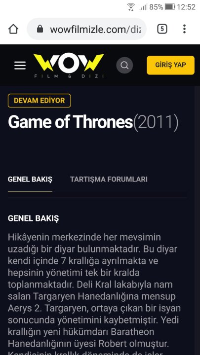 Bu sitenin uzantısı com sizde bakın ve game of thrones in bölümleri mevcut