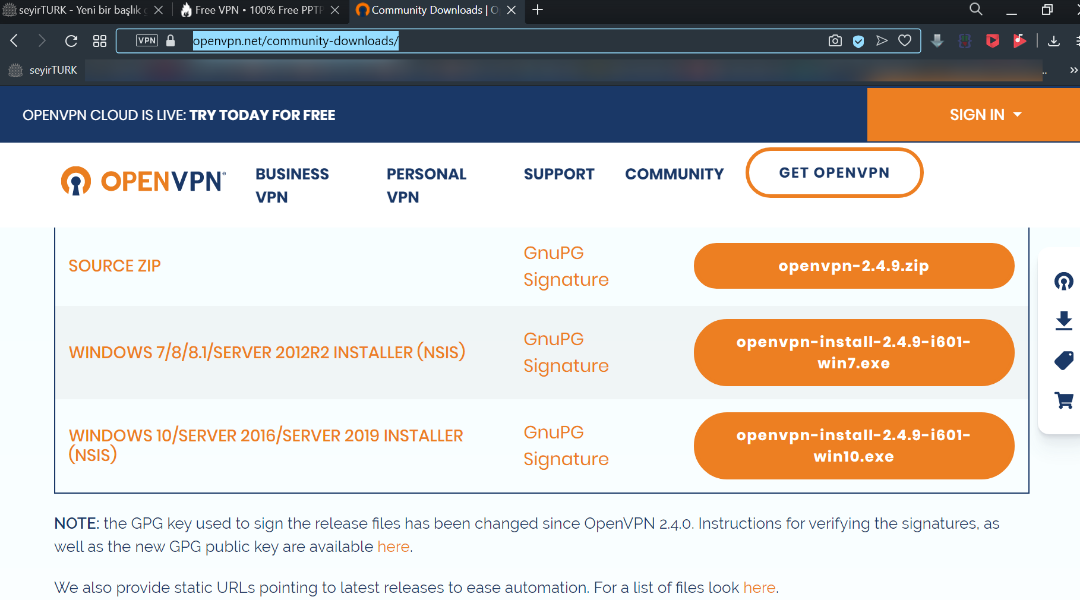 1. Öncelikle https://openvpn.net/community-downloads/ adresinden sistemimize uygun olan openvpn programını indirip kuruyoruz,